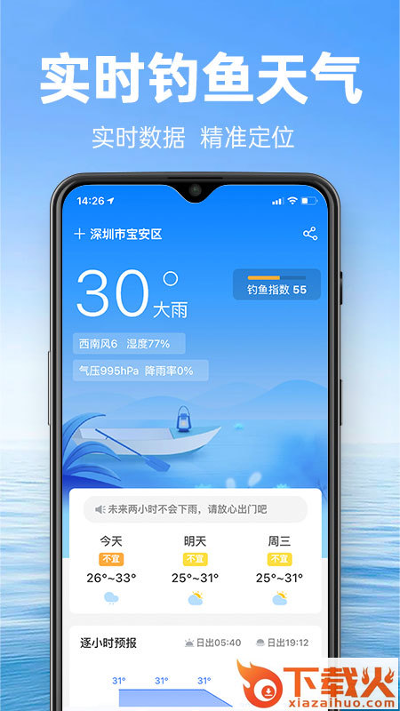 【钓鱼天气】提供实时准确与钓鱼密切相关的天气指数、帮你优化选择最佳钓鱼时机;