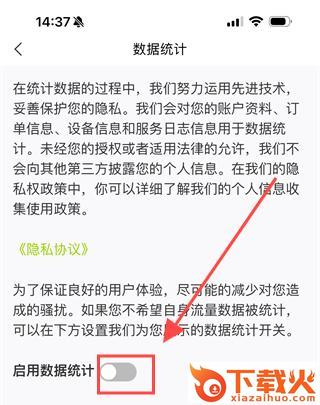 3、进入数据统计界面,点击数据统计后方的【开关】按钮