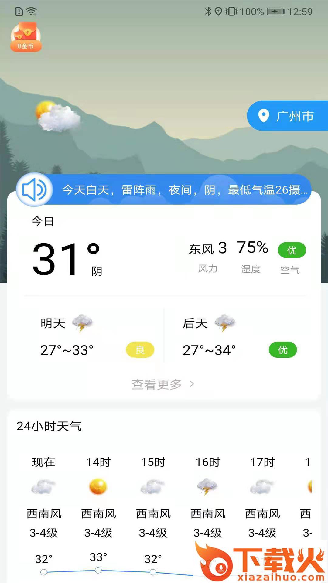 朝夕天气app,简约的手机天气预报软件,随时查看最新天气信息,关注天气变化,享受更贴心的天气预报服务,每天签到还能赚收益,享受更多优质服务。