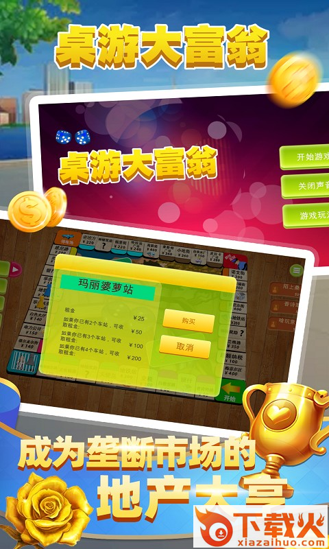 你会成为最终垄断市场,富甲一方的地产大亨吗?快来《桌游大富翁》证明你自己吧!