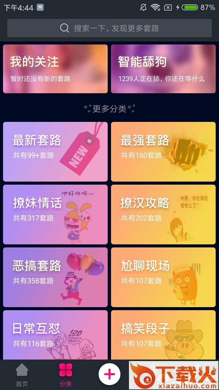 套路王是一款让聊天更有趣的软件,为大家提供了多种互动交流的方式,对话、段子、搞笑趣图等多种方式,不管是文艺的还是搞笑的这里都有,各种好玩有意思的套路对话随时查看,像看小说一样聊天,更生动,有了套路,聊天不尬,趣味多多。