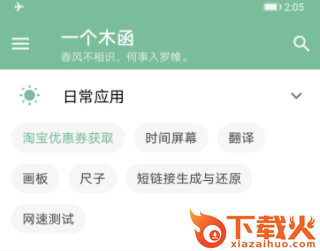 一个木函是依靠应用小工具合集,该合集包含了微云直链解析,字典、词典,QQ拉圈圈、音乐加速、音乐解析等诸多功能。软件体积超小巧,软件功能超强大,觉得不错的朋友可以下载试试。
