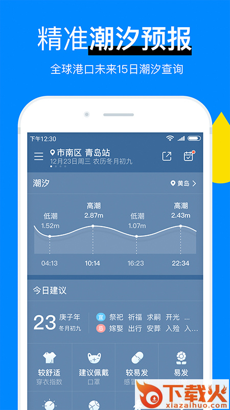 提供穿衣、洗车、紫外线、感冒、运动、旅游等生活指数,还有每日优选、精彩阅读、星座占卜、黄历运势、签名设计等一系列趣味功能,做你最贴心的生活小助手~