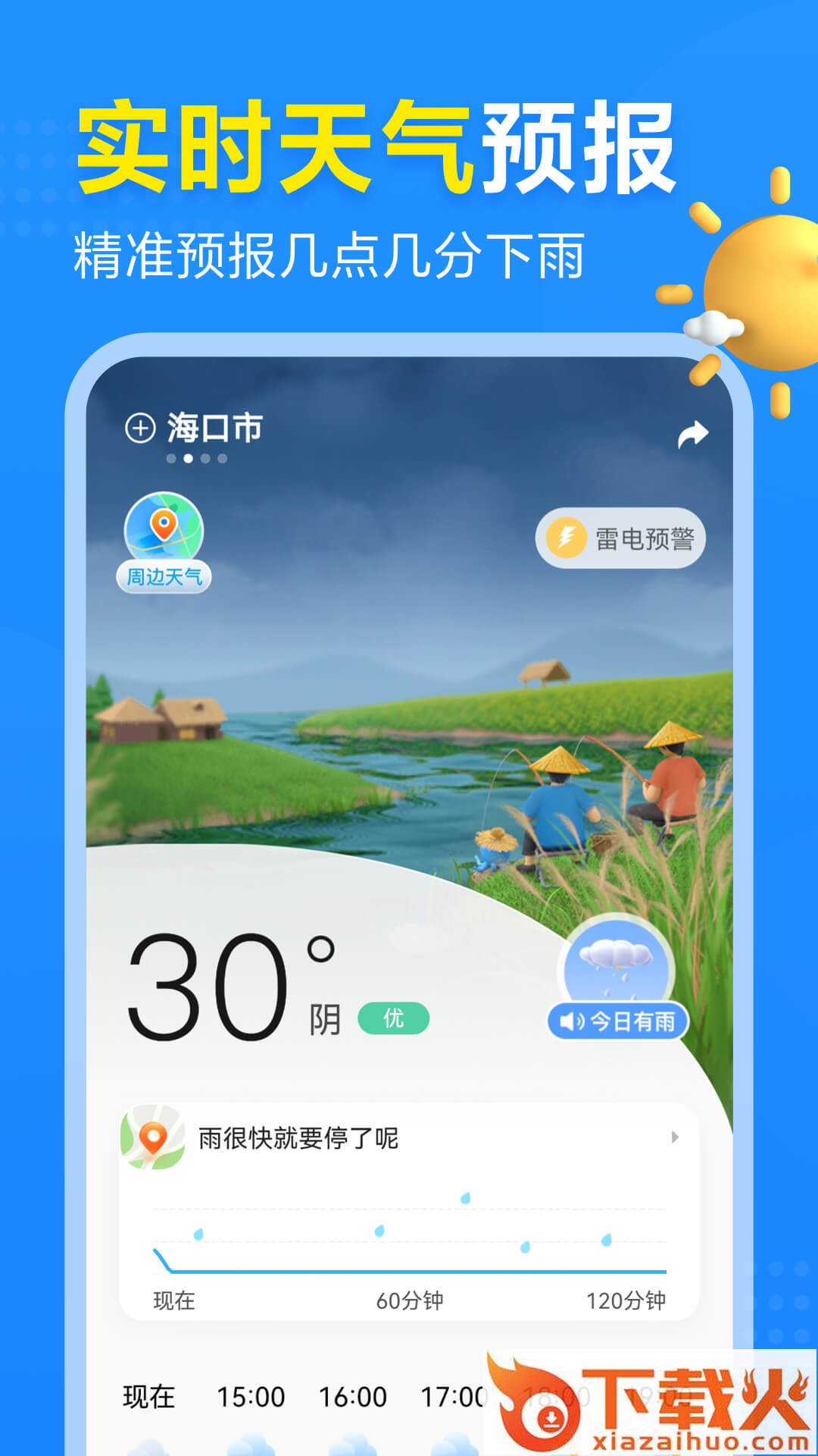 【A股互联网上市公司“二三四五”】荣誉出品,全天气查询平台,支持全球4万个城市及乡镇天气查询!【上线7年】为1.4亿用户提供天气服务!【未来40日天气预报】,当前2小时内降雨变化,今明后96小时每小时天气变化...这些内容清晰了解;也有及时的暴雨、冰雹等【恶劣天气提前提醒】,助您从容应对各类突发天气!