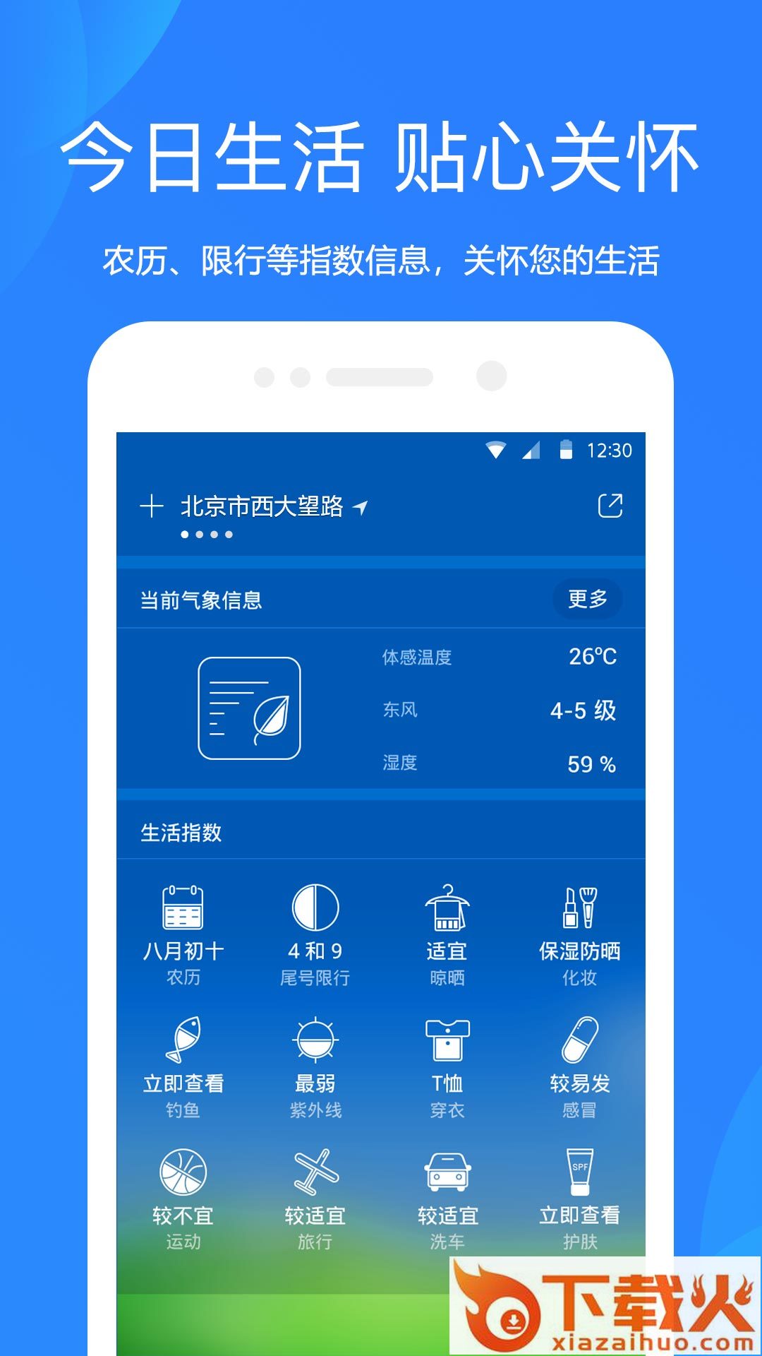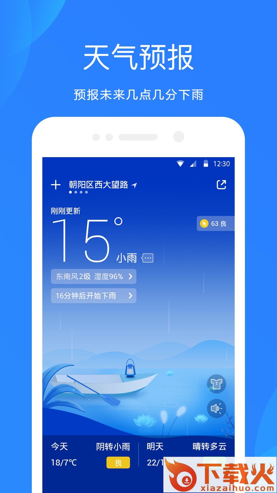 天气预报App,准确预报未来几天天气状况,预报未来几点几分下雨;15日天气预报,一次查看未来15日天气变化;未来一个小时雨雪预报,不被雨林,就靠它了;多套精美桌面皮肤,在桌面也可以看天气哟;今日生活,...