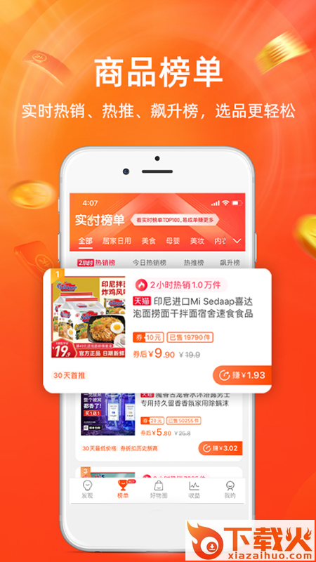 2、在榜单的页面中可以查看热销榜、高佣榜、飙升榜等;