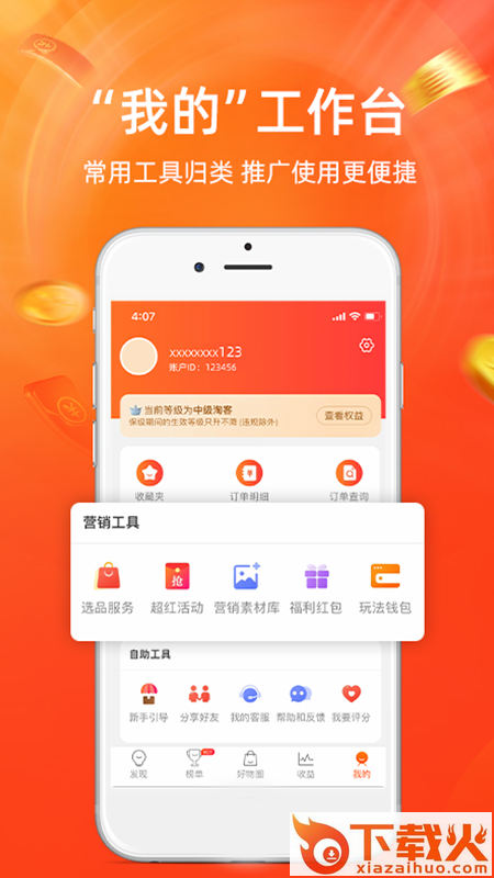 - 多渠道分享,社交工具、二维码、短链接,一键转发有钱赚!
