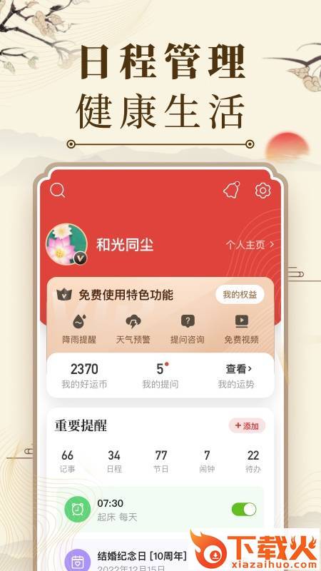 旧貌换新颜,中华万年历品牌全面升级。日历、运势、日程、记事、提醒,功能全,体积小;