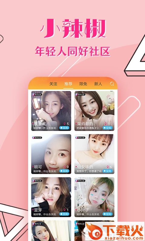 小辣椒社区官网app下载,为更多小伙伴提供专业优质的互动社交服务,来小辣椒社区手机app可以随时随地和更多有趣的有特色的朋友相遇相交,感兴趣就来下载。