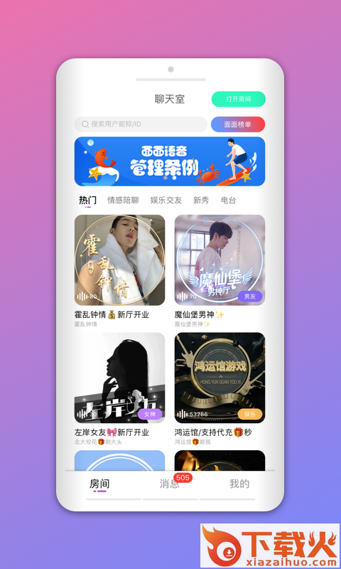 面面语音是一款非常好用的手机在线语音交友平台。这里有专业的语音房间。可以和朋友畅快聊天。功能齐全,感兴趣的朋友不要错过了,快来下载体验吧。