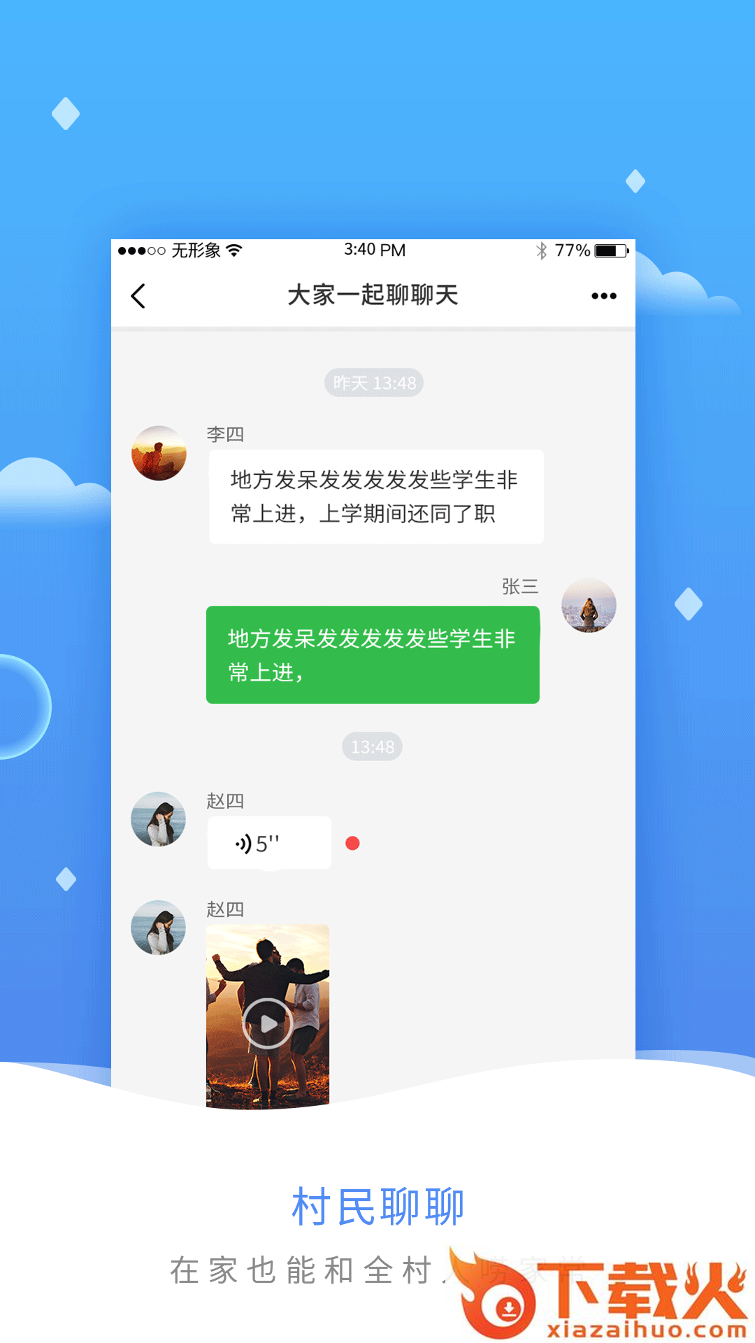 1、用户可以与村里人实时进行沟通聊天,了解家乡情况;