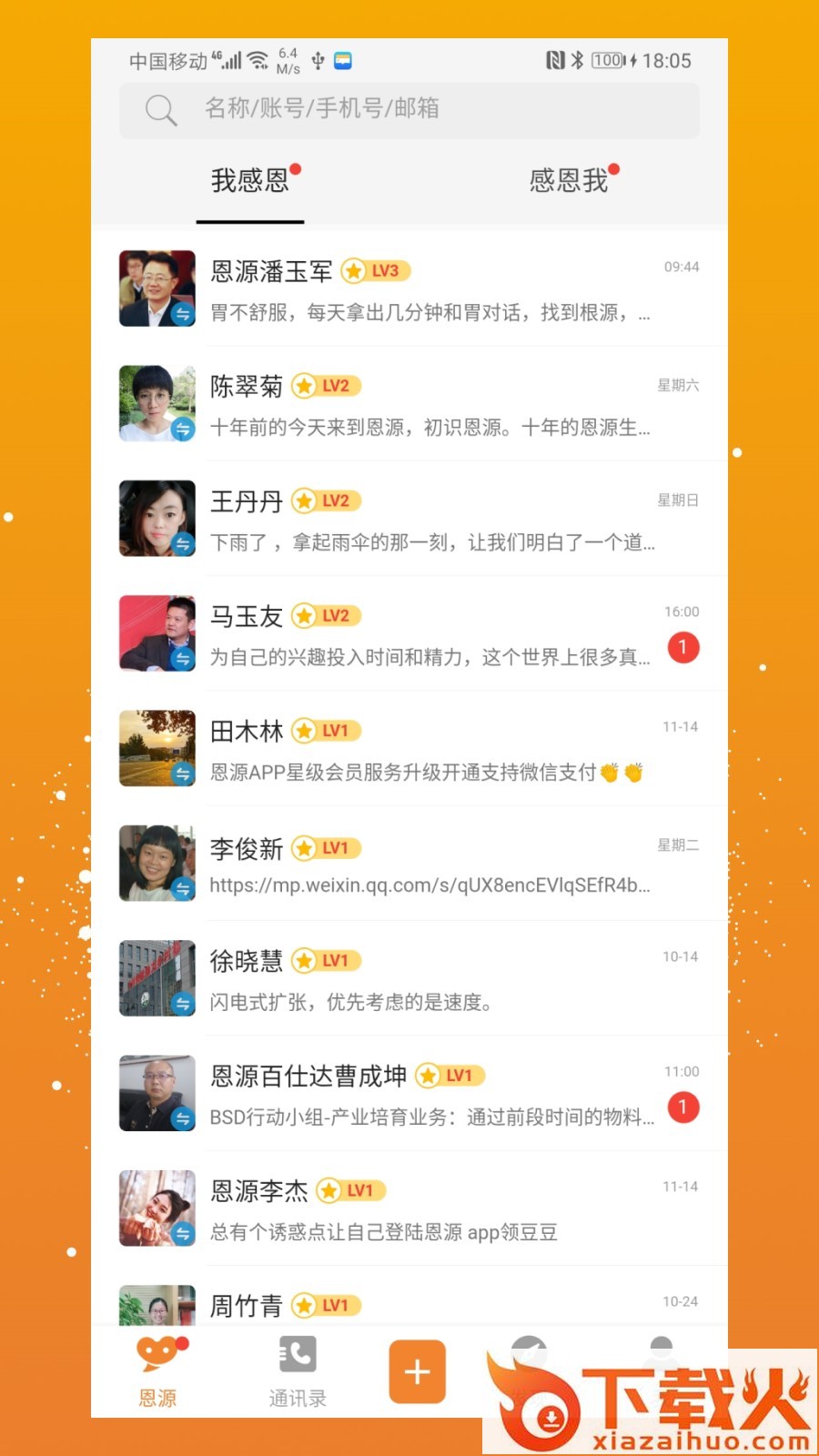 恩源app,专注感恩的聊天社交软件,支持在线聊天、动态发布等功能,关注感兴趣的好友,互相帮助,便捷沟通,还能赠送帮助你的人感恩豆,快速拉近彼此距离,结识更多有趣小伙伴。...