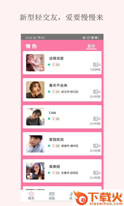 慢热恋爱交友,新型恋爱交友平台,信息真实,轻松查看感兴趣的好友资料信息,快速畅聊,轻松互动,轻松找对象、找朋友,告别孤独。下载慢热恋爱交友app,随时随地聊天交友。...