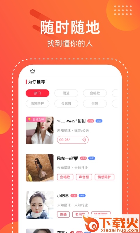 【私密聊天】单身男女一对一语音聊天交友,查看附近单身女生;