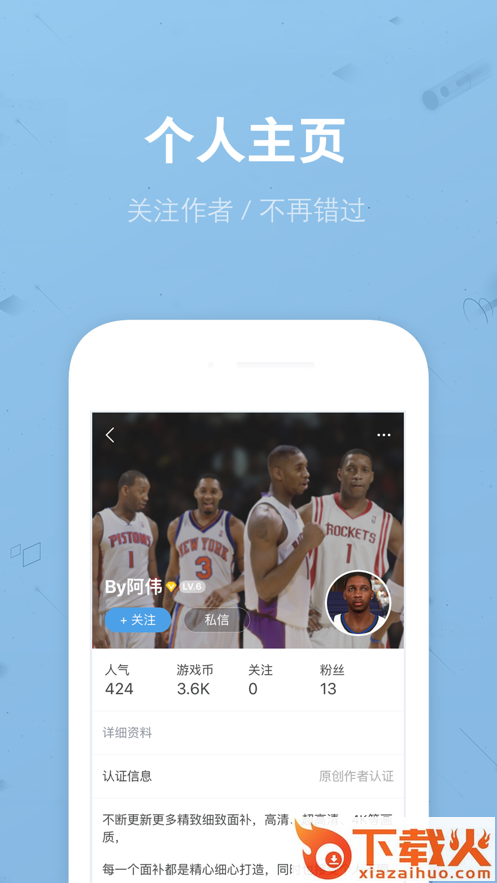 用户主页个性化,头像,个人主页背景,个性签名等资料修改。