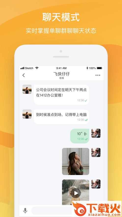 1、畅聊:提供一对一聊天和群聊,支持文本、语音、图片、视频、实时通话等多种聊天功能;