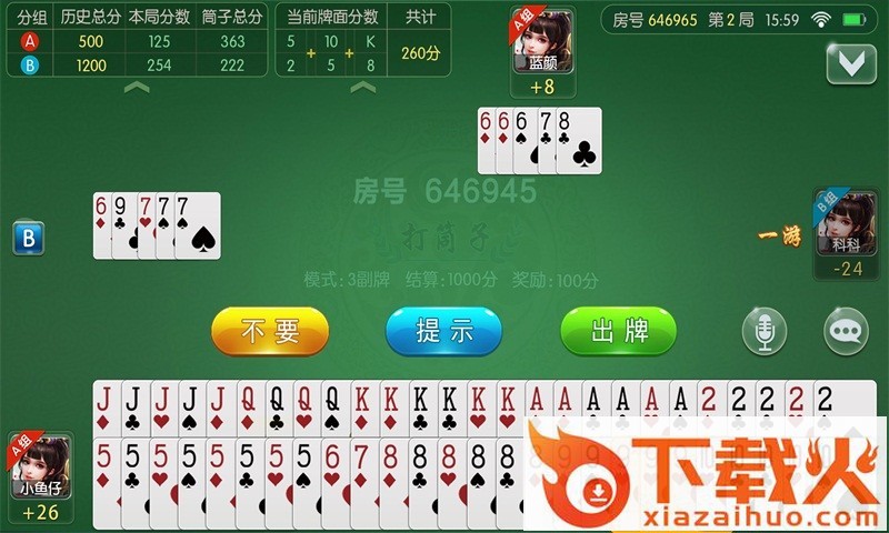 正宗邵阳打筒子,包含4人、3人、2人多种玩法!还有跑得快、邵阳字牌、邵阳剥皮哦! 打筒子玩家数量遥遥领先,值得信赖的打筒子游戏!