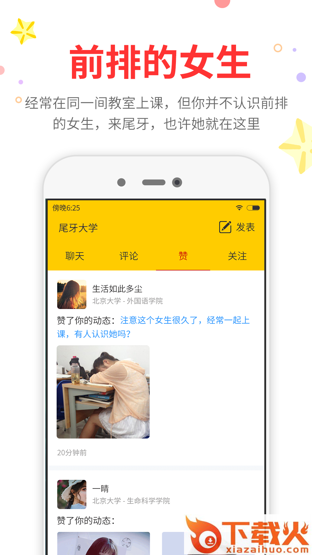 尾牙大学app下载,一款面向全国大学生的互动交流平台,在这里大家分享不同的校园生活,尾牙大学app让不同碰撞出精彩的火花,欢迎下载体验!...
