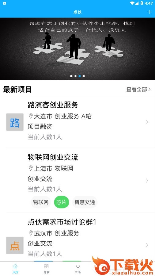 点伙app是一款创业投资分享交流服务平台,旨在帮助创业者找创业圈子、找创业合伙人、找创业项目、找创业分享、找需求解决方案。感兴趣的朋友点击下载吧!...