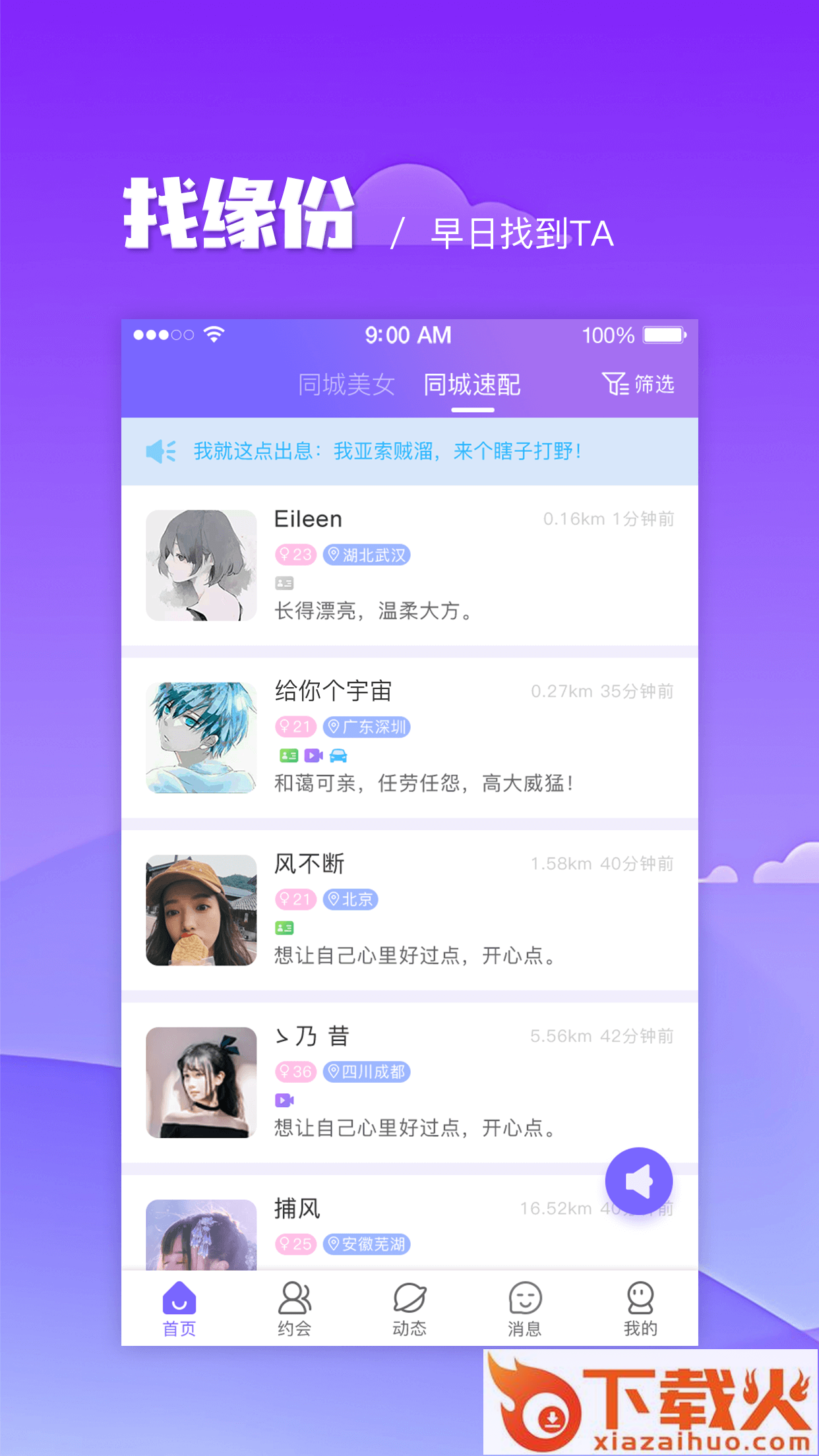 可以轻松准确的约会成功。在动态圈里,分享你生活中的点滴精彩,让所有人为你点赞;通过同城的人,更快、更轻松的找到志趣相投的小伙伴。
