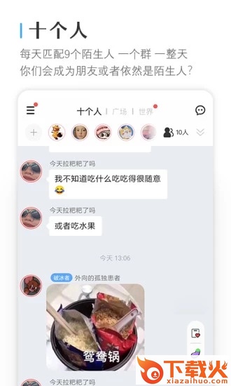 1、一款超级好玩的社交工具,在这里必须要有十个人才能聊天;