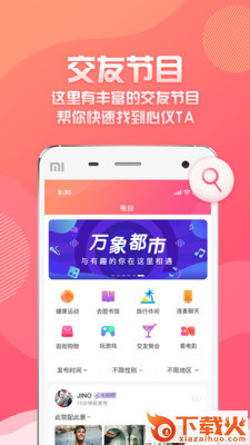 在平台可以发布看电影、吃吃喝喝、玩游戏、运动、旅游等节目的广播,简单高效,立即脱单。