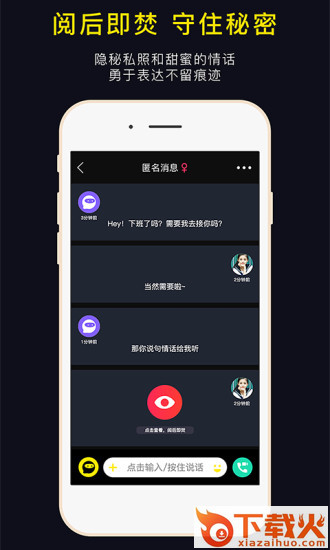 脸说阅后即焚和截图保护功能, 帮你守住秘密,用户之间发送的任何形式信息只要设定,都会在阅读后自动焚毁、对方一旦截屏就会立刻通知,让你的秘密可以无压分享,不留痕迹;满分新奇的匿名聊天也让聊天更有趣且无负担,一旦设定此条消息为匿名消息后,对方将不知道你是谁。这里没家长、没老板,只有志同道合的小伙伴。脸说的 AR 虚拟形象、阅后即焚、匿名聊天,可以承载你的吐槽与秘密、天真与张狂,在脸说,你都可以尽情倾诉。