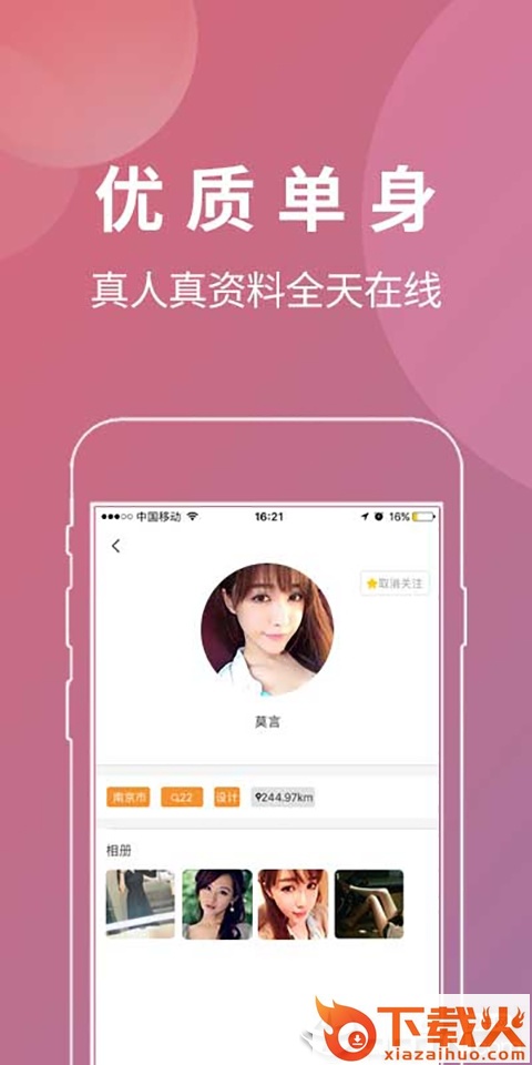你可以在资料页存放照片,以及签名、职业、爱好等等,增进别人对你的了解。
