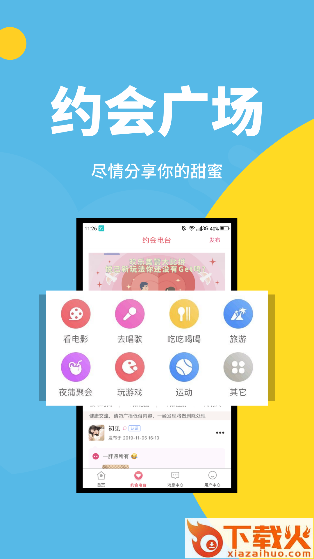 新悦己可以分享你的甜蜜约会,发布你的日常生活。