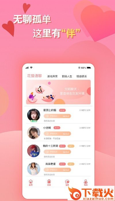花猫语聊app是一款非常不错的线上社交聊天软件,这里有着超多丰富的陌生人社交活动,可以通过声音去结交志同道合的朋友,心动的小伙伴快来点击下载安装吧!...