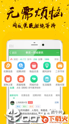 【社区服务】便民服务、跳蚤市场、二手汽车、招聘信息、家政服务、房屋租售等等,本地便民信息及时发布