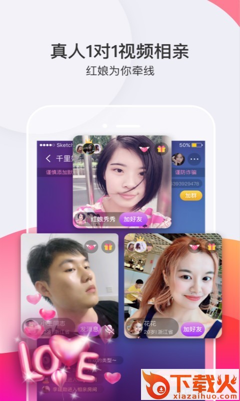 创新的视频相亲体验,专业红娘在线指导,好玩的多人语音视频聊天交友,聊开心再见面,轻松脱单!