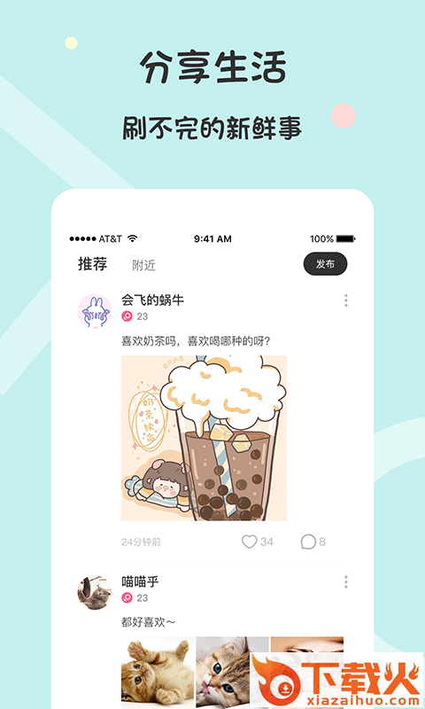 3、动态:分享美好生活点滴,让更多人看到你。刷不完的新鲜事,遇见想聊的人。