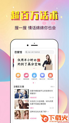 最美恋爱app是一款非常专业的恋爱话术软件,这里有上百万条恋爱话术,让你轻松读懂女生话中的隐藏含义,还能查看恋爱实战经验,在线学习话术的运用情况,帮你撩女神,哄女朋友,赶快下载体验吧!...