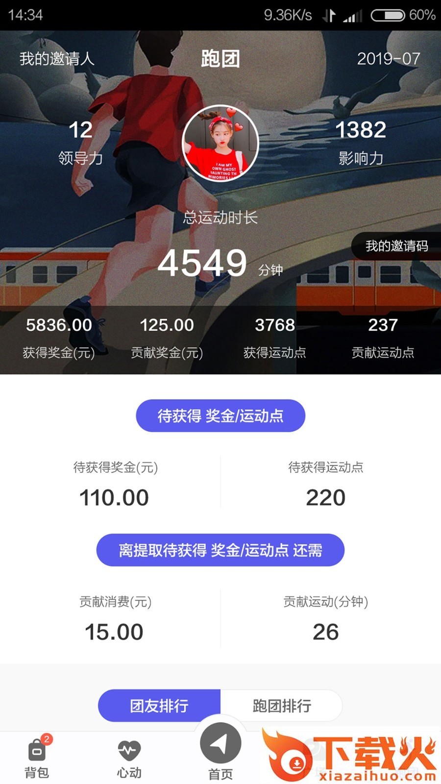 用户可以参加跑团,跑团和商家合作,帮助商家推广,用户就可以获得分成奖励,运动健身和赚钱两不误!