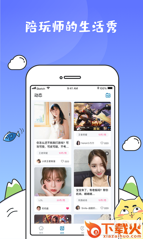 闲着没事儿,可以在动态社区看看游戏大神的华丽操作,小姐姐的卖萌小视频,还可以约他们一起玩哟~