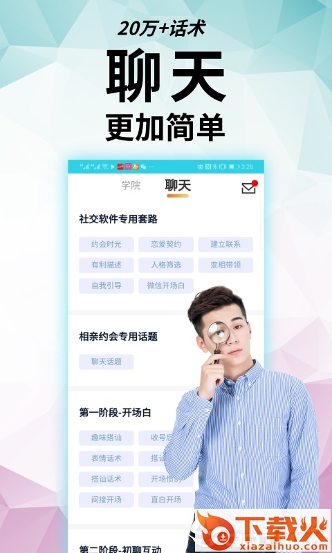 轻撩教你恋爱聊天话术,让大家都爱上会聊天的你。这里有20w+聊天话术套路。直接复制粘贴,非常的方便。99的学员在这里获得了极大的进步。感兴趣的朋友快来下载体验吧。...