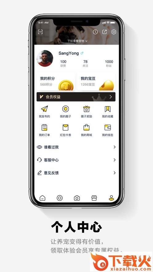 - 个人中心:让养宠变得有价值,完成任务得福豆,免费抽奖各类宠物用品惊喜不断。签到,免费领取体验会员享专属权益。积分消费更优惠!