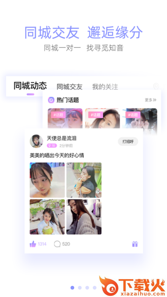 支持全国23省600多个城市单身男女在线互动交流,同城动态,语音视频,在线互动,在线交友,