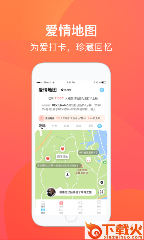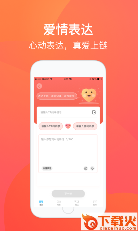 爱来啦app,爱情大厅,为爱见证,永恒留存;爱情地图,为爱打卡,珍藏回忆;幸福社区,爱情达人,为你解忧;爱情表,心动表达,真爱上链。...