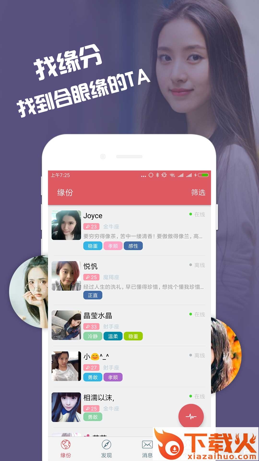 缘来约会交友app下载,一款近来十分火爆的在线婚恋交友平台。这里专为单身用户提供各种社交方式,多样的交友方法,广大的交友对象,轻松帮你解决个人问题,是你必备的脱单神器。...