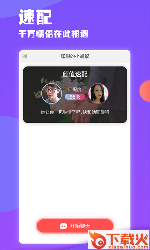 一款为单身男女设计的在线移动社交平台,翻牌、速配多种趣味交友方式,帮助用户快速找到恋爱对象。