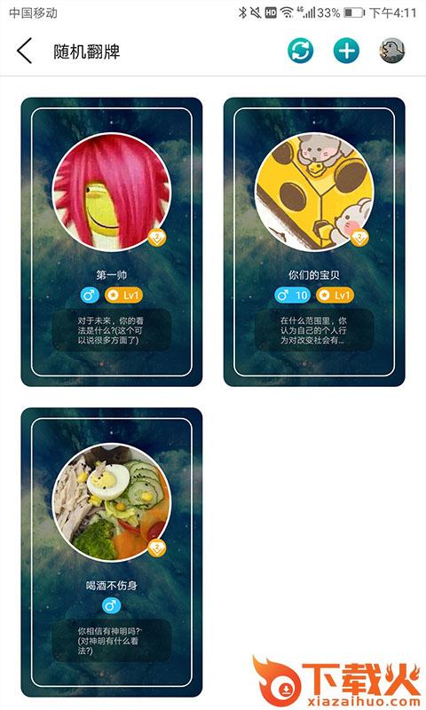 这是一款贴近当代生活的社交app-超级搭讪,主打在同城同商圈同坐标即时和陌生人线上互动,翻牌功能无需填写任何资料,仅回答几个问题就可以找到内心契合的陌生人,此外还有动态广场,来自五湖四海的用户分享美食,好玩的,有趣东西,找到与你投其所好的人。