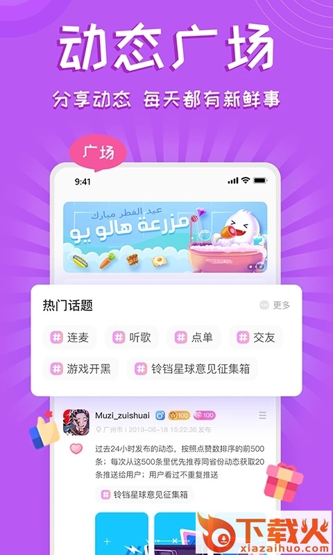 ��app是一款非常优质的手机在线兴趣交友互动平台。大家在这里找到优质的兴趣交友模式,轻松告别单身,非常的实用。感兴趣的朋友不要错过了,快来下载体验吧。