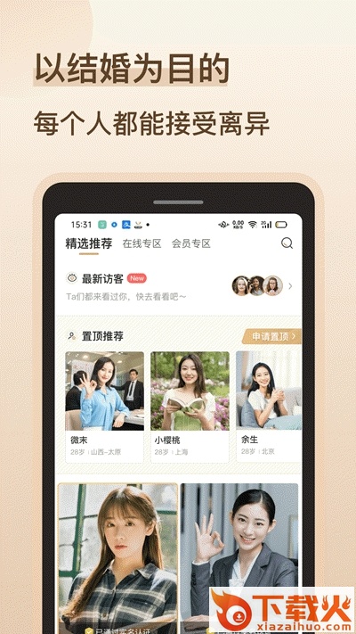 再婚相亲角app是一款单身离异人群专属相亲软件,在这里可以寻找你的第二次缘分,所有用户全都经过认证的,可以放心交友,帮助你找到新的爱情。感兴趣的赶快下载吧!
