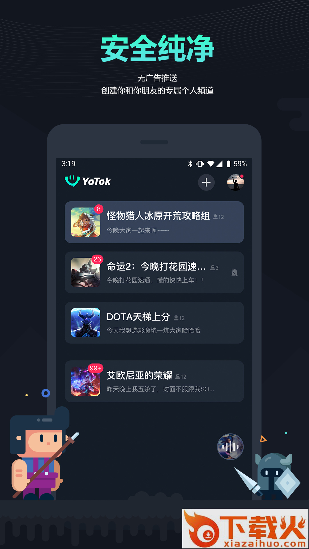 YoTok,专为用户打造最贴心纯净的一站式语音协作平台。无需打开多个app,你可以在yotok这一个应用上完成和队友所有的日常聊天和语音开黑 。