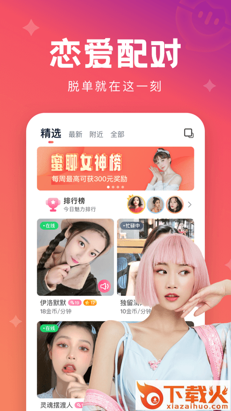 海量在线声优任你挑选,快速开启语音聊天,用声音魅力展示自己,也能够找到与自己匹配的声音,与高颜值声优在线组CP.